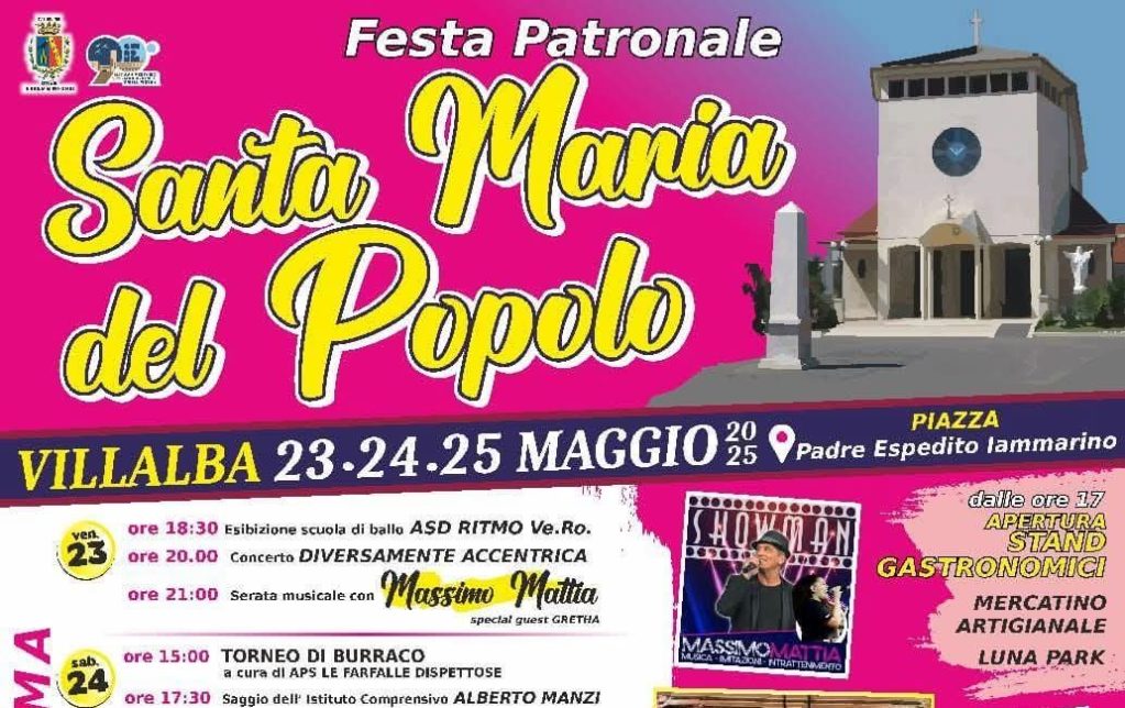 Dal 23 al 25 maggio 2025, Villalba si prepara a celebrare la Festa Patronale di Santa Maria del Popolo con...