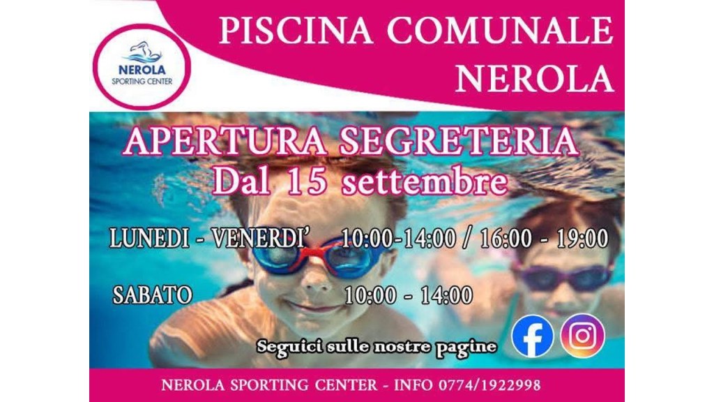 La piscina comunale di Nerola, gestita dal Nerola Sporting Center, ha annunciato l’apertura della segreteria a partire da lunedì 15...