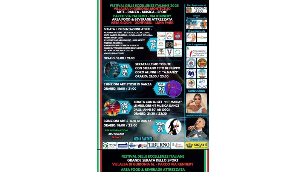 Dal 26 al 28 settembre 2025, Villalba di Guidonia Montecelio sarà il palcoscenico del Festival delle Eccellenze Italiane, appuntamento dedicato...