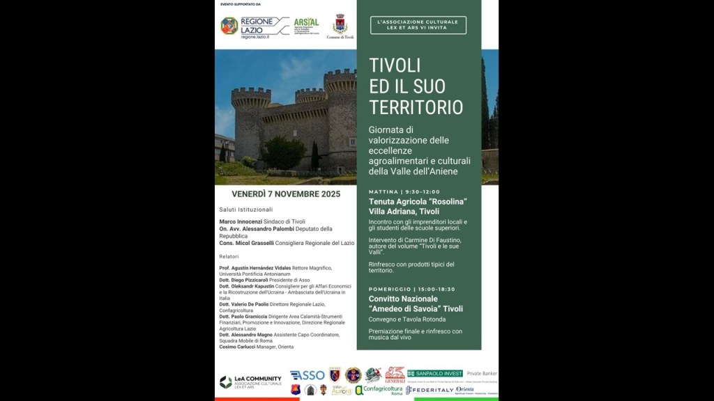 Venerdì 7 novembre 2025, la città di Tivoli ospiterà una giornata interamente dedicata alla conoscenza e alla valorizzazione delle risorse...