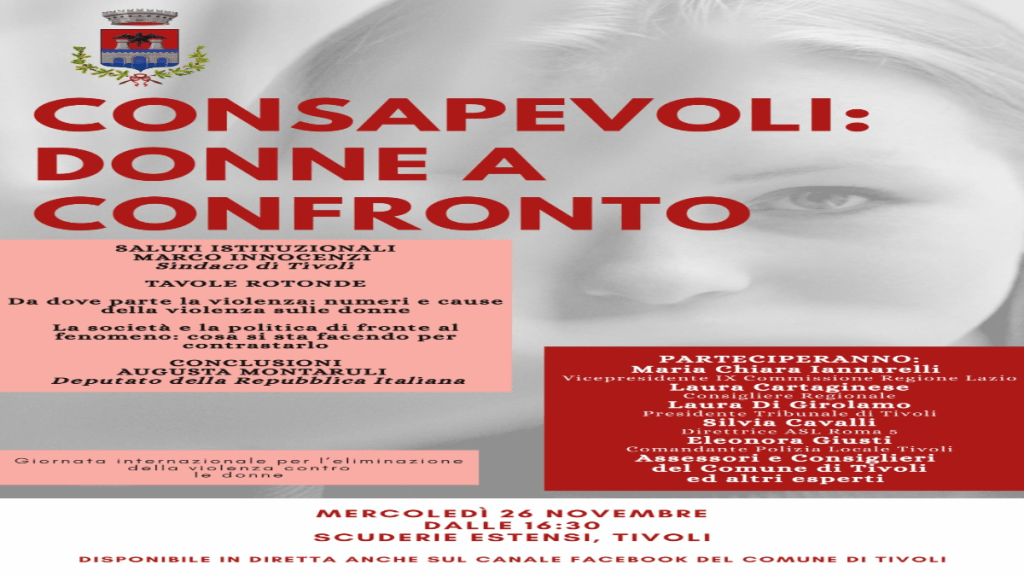 Il Comune di Tivoli invita la cittadinanza a partecipare al convegno “Consapevoli: donne a confronto”, iniziativa inserita nel programma dedicato...