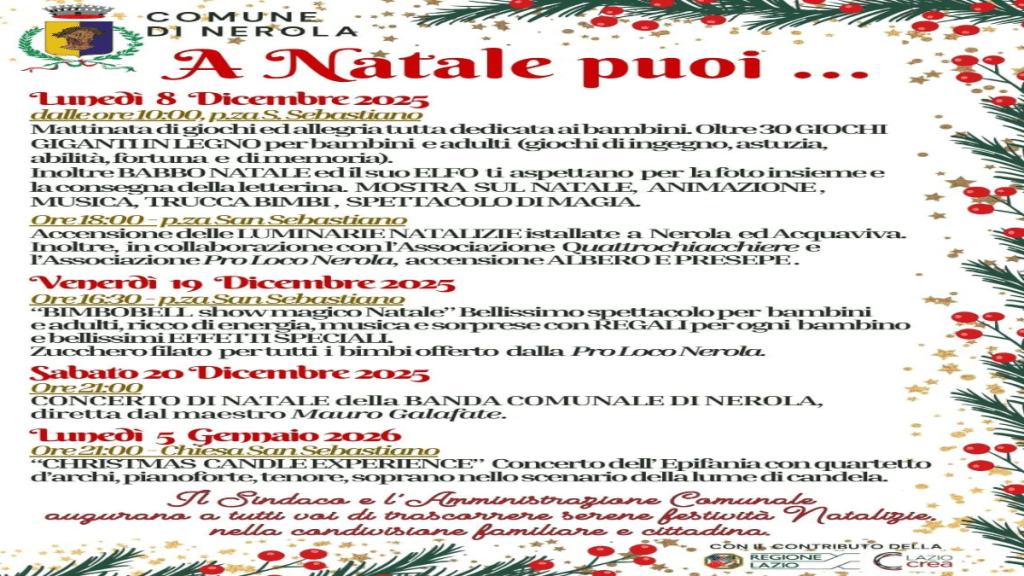 Il Comune di Nerola ha ufficialmente presentato il calendario delle iniziative dedicate alle festività natalizie a Nerola, offrendo ai cittadini...