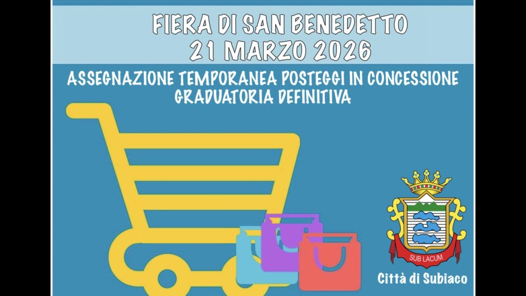 Il Comune di Subiaco ha reso nota la graduatoria finale per l’assegnazione dei posteggi in occasione della tradizionale Fiera delle...
