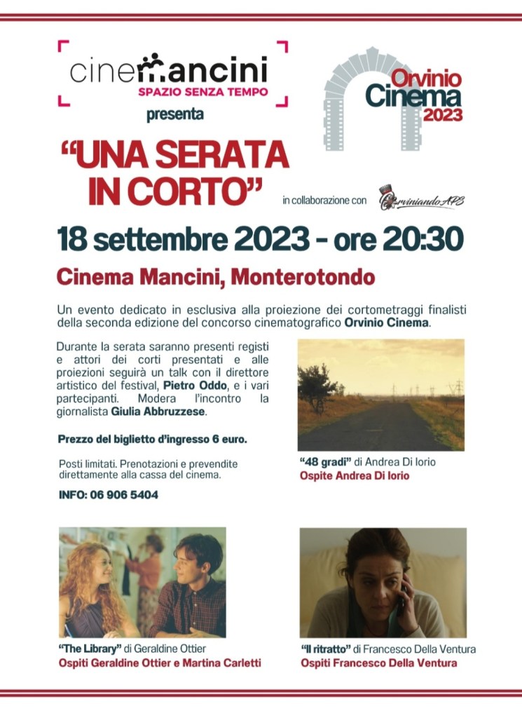 Lunedì 18 Settembre, alle ore 20.30, Monterotondo si prepara a illuminarsi di talento e creatività cinematografica. Presso il Cinema Mancini, sarà protagonista una serata speciale dedicata alla presentazione dei cortometraggi finalisti della seconda edizione di Orvinio Cinema.