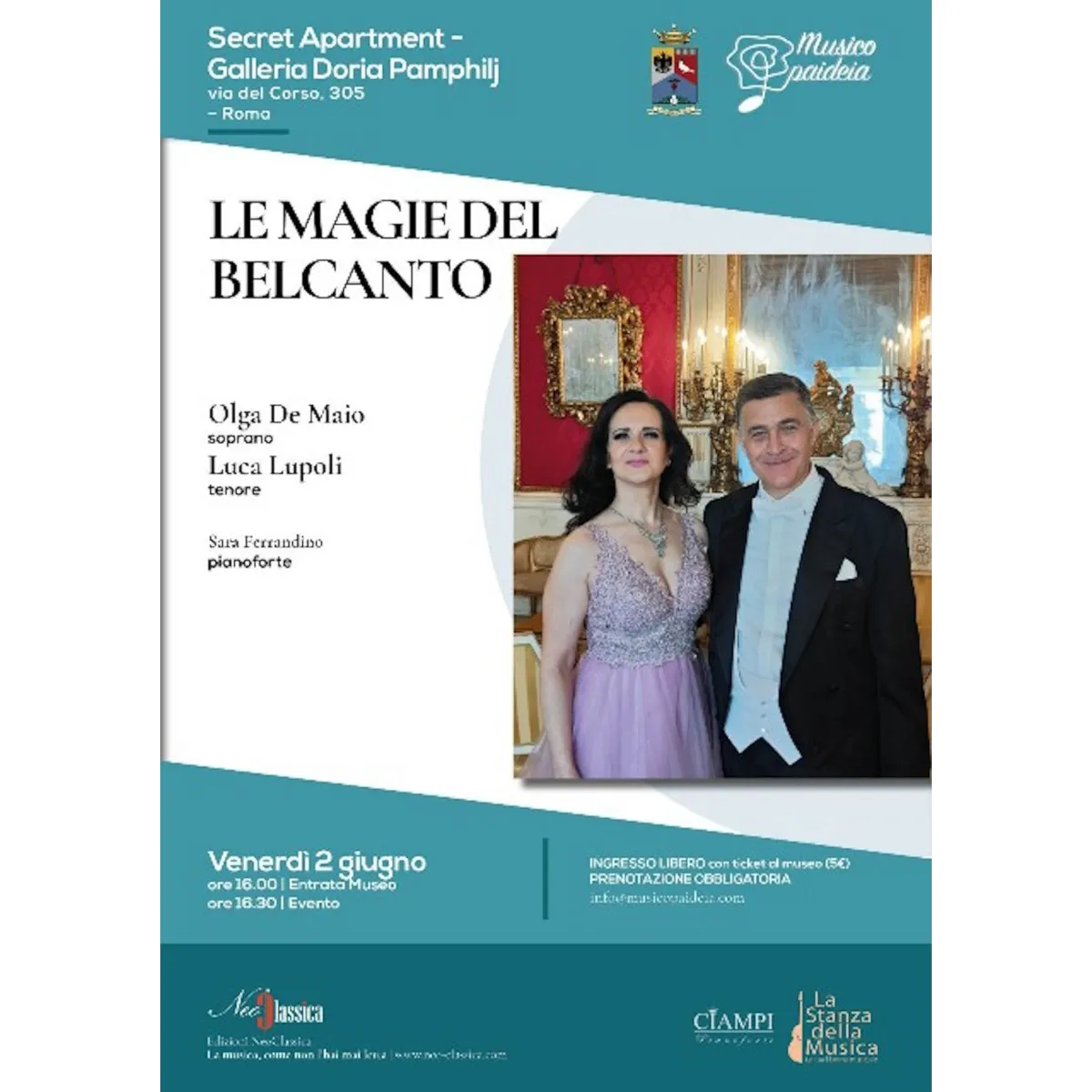 Il prossimo 2 giugno 2023 alle h.16.30 il soprano Olga De Maio ed il tenore Luca Lupoli saranno protagonisti nella splendida e storica cornice della Galleria Doria Pamphilj – Palazzo Doria Pamphilj di Roma- Secret Apartaments– del recital lirico “Magie del Belcanto“, in collaborazione con l’Associazione Culturale Musicopaideia, accompagnati al pianoforte dal M° Sara Ferrandino.