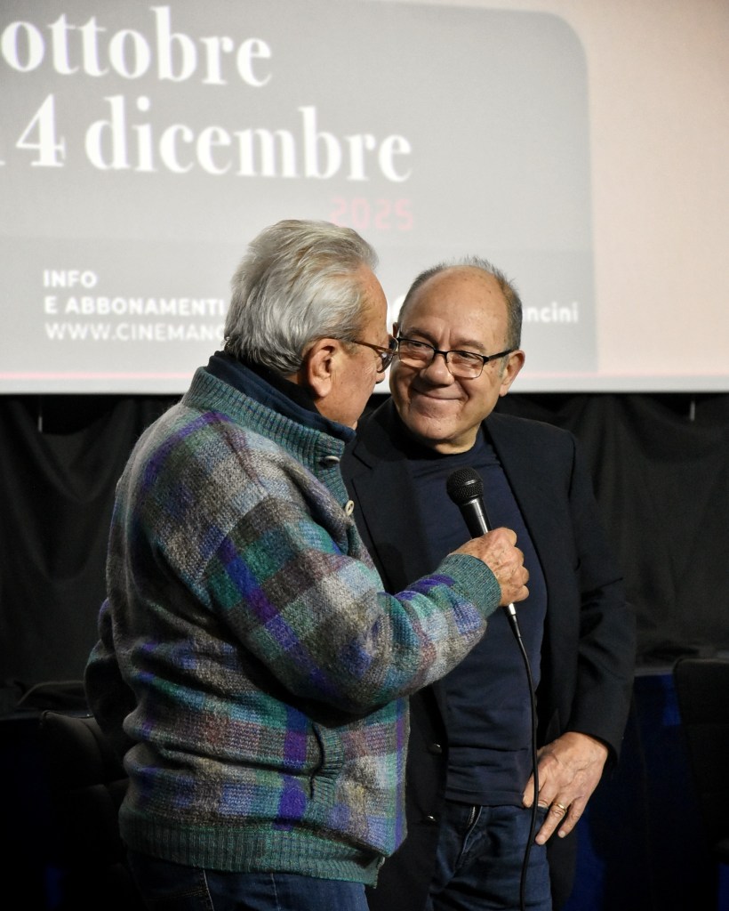 Con la sua consueta ironia e delicatezza, il regista e attore ha ripercorso aneddoti della sua carriera, soffermandosi in particolare sulla genesi di Viaggi di Nozze, girato tra difficoltà fisiche e ispirazione creativa. Il pubblico, rapito dal suo racconto, ha seguito con attenzione anche le sue riflessioni sull’evoluzione dei “tipi umani”, sull’omologazione contemporanea e sul ruolo dell’osservazione nella costruzione delle storie.