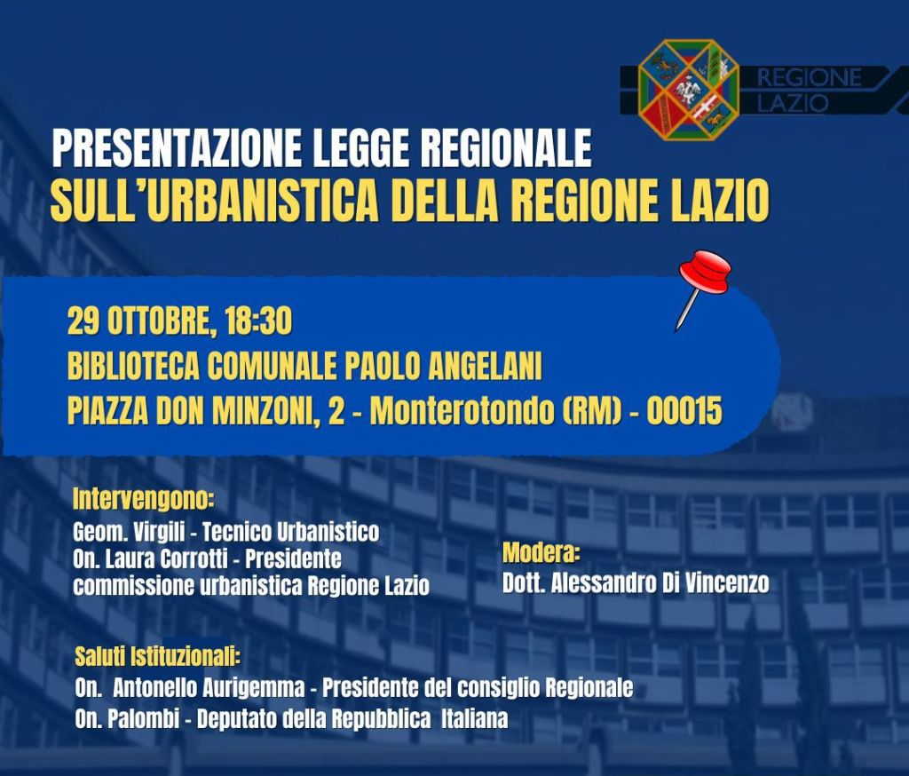 Domani dalle ore 18.30, presso la Biblioteca Comunale Paolo Angelani di Monterotondo, verrà presentata la Legge Regionale sull’urbanistica della Regione...