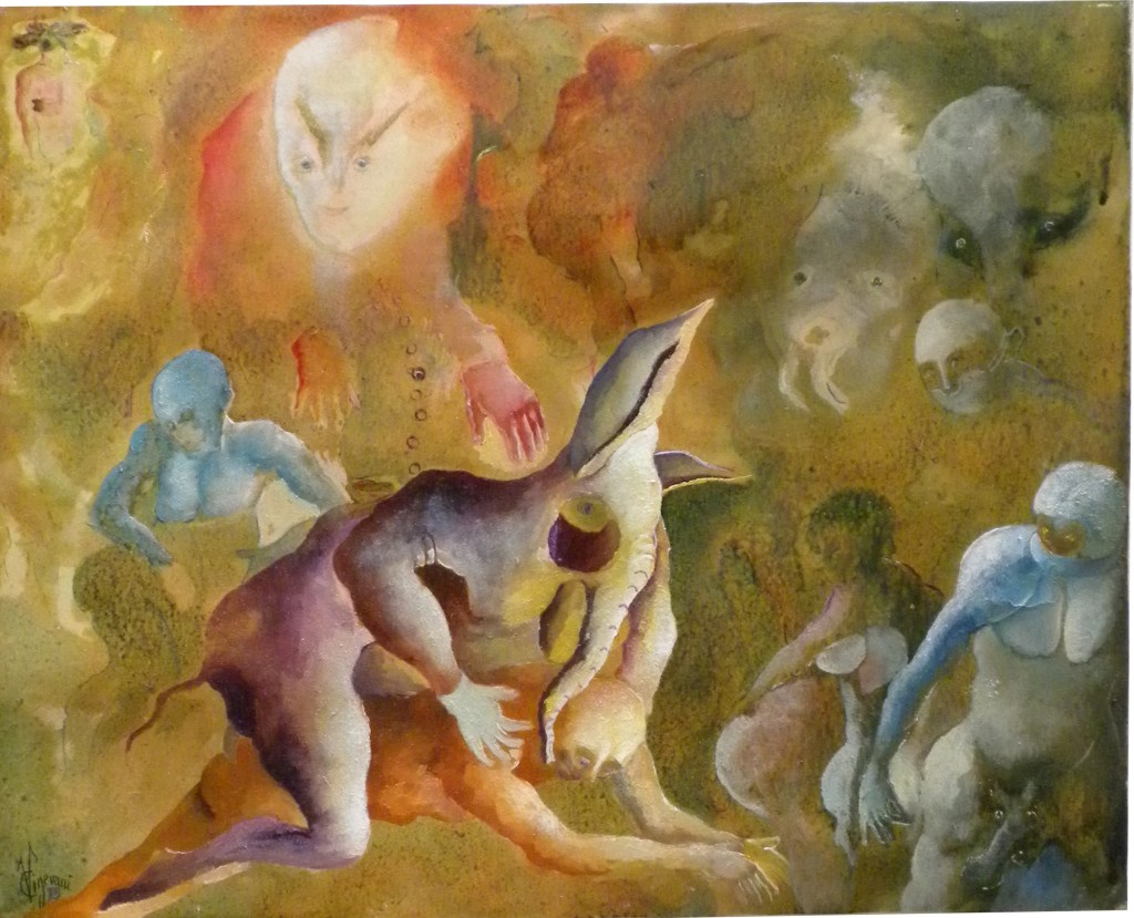 È quanto avviene nell’opera accolta nella mia Collezione di arte contemporanea presso il Museo Magni-Mirisola di Velletri, “Connubio”, risalente al 1975, in cui un turbinìo onirico, surreale e apocalittico, si carica di valenze primordiali e mitologiche, in cui il limite tra la ferinità e l’umanità vengono declinate con un approccio ironico e critico. Ed è questo, a mio avviso, il link tra l’attività artistica e quella politica e sociale di Vigevani. Quest’uomo schivo, che rifuggiva i premi e i riconoscimenti, sempre a latere rispetto alle manifestazioni collettive, che lui stesso organizzava, ora andrà studiato e riscoperto, riconosciuto come merita, da una critica che lo ha ingiustamente ignorato in vita.