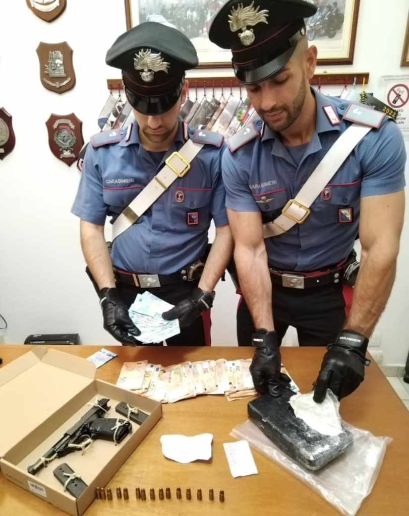 Ricerche più approfondite hanno poi consentito di rinvenire e sequestrare 1 kg di cocaina, insieme a circa 4.000 euro in contanti, ritenuti il provento di una pregressa attività di spaccio.