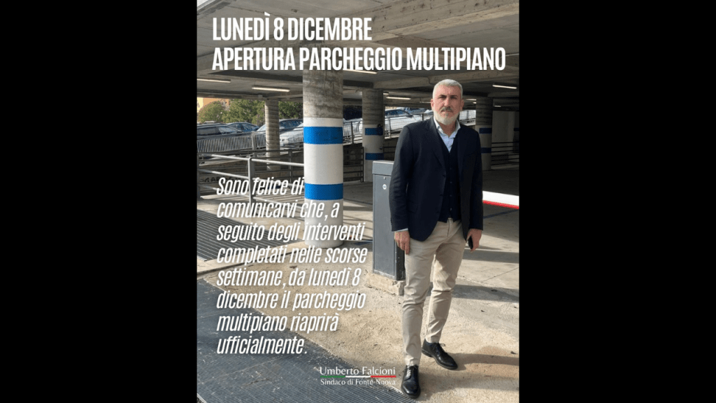 A partire da lunedì 8 dicembre riaprirà ufficialmente il parcheggio multipiano di Fonte Nuova, dopo gli interventi completati nelle ultime...