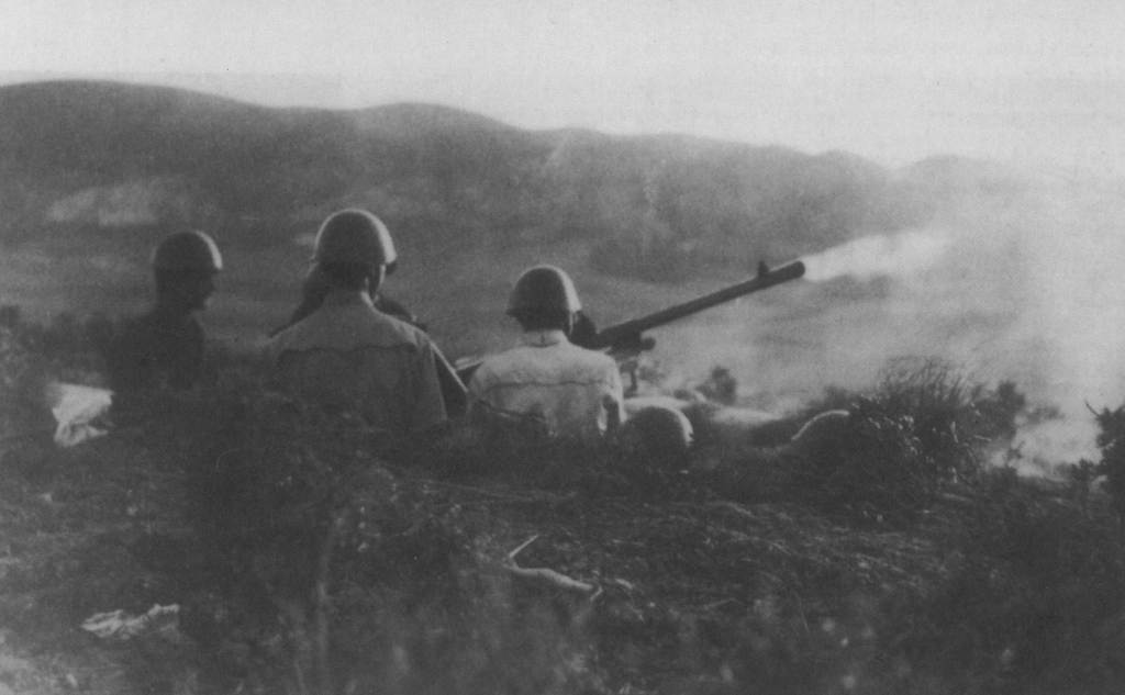 Una delle postazioni antiaeree italiane in azione durante aviosbarco tedesco