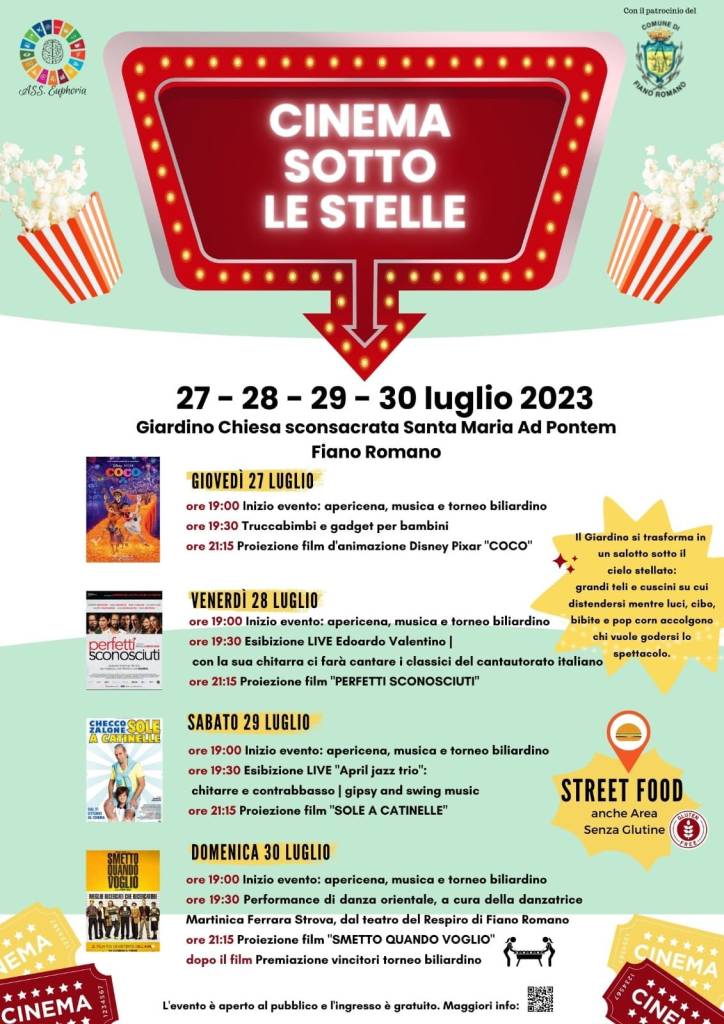 A Fiano Romano è in arrivo il Cinema sotto le Stelle, un’iniziativa che promette di trasportare tutti in un mondo di magia cinematografica sotto il cielo stellato.