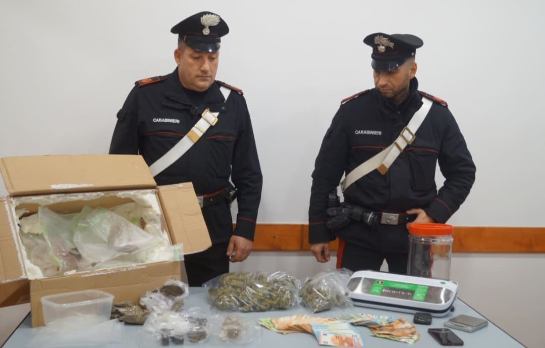 Dopo un mirato servizio di osservazione, i Carabinieri hanno perquisito l’abitazione, in uso all’indagato ed hanno rinvenuto circa 1 kg di stupefacenti (tra hashish e marijuana) con diverso materiale per il taglio e il confezionamento delle dosi, nonché la somma di 10.000 Euro in contanti della quale non ha giustificato la provenienza.