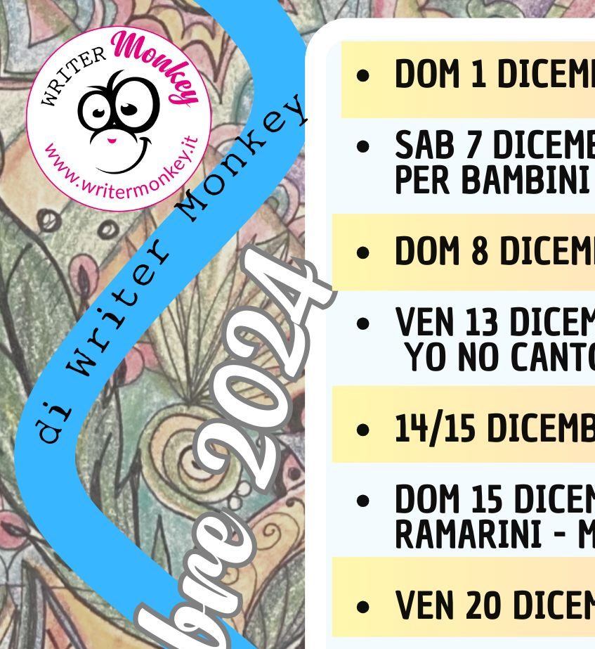 Il Circolo Arci Writer Monkey, punto di riferimento per la cultura a Monterotondo, si prepara a offrire un dicembre ricco di eventi, tra quelli ospitati nella sua accogliente sede e le collaborazioni che portano l’arte e la creatività anche fuori dal circolo. Un mese per grandi e piccoli, perfetto per chi desidera immergersi nell’atmosfera natalizia con momenti di musica, letteratura e solidarietà.