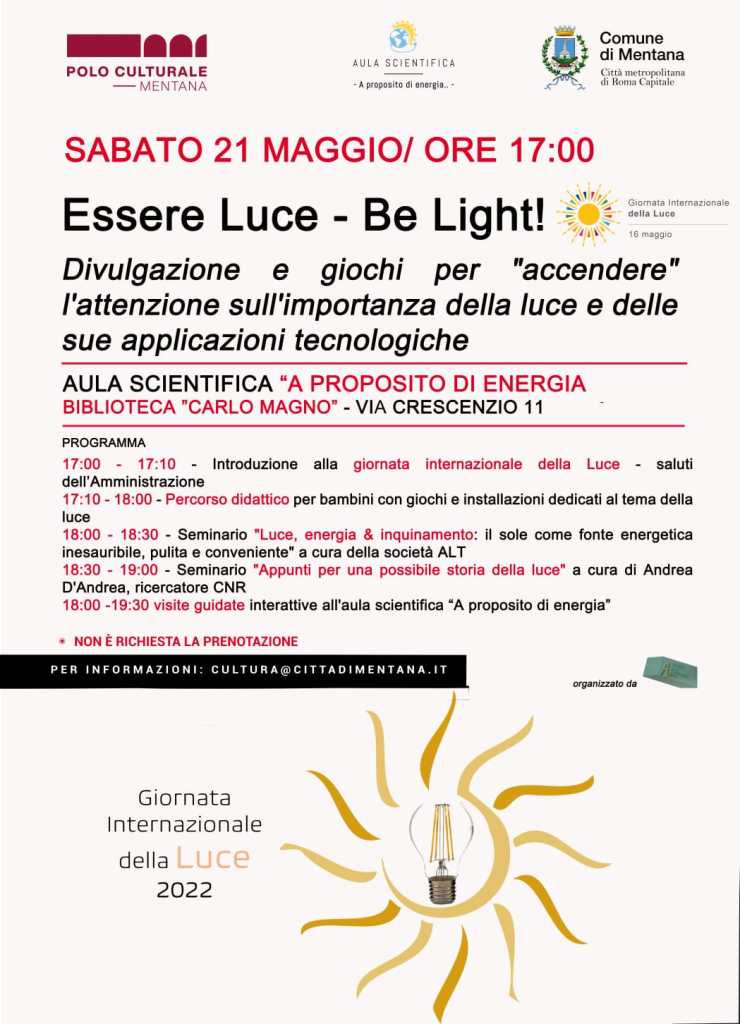 ” Essere Luce – Be Light! ” è il titolo del nuovo evento organizzato dal Comune di Mentana (Roma).