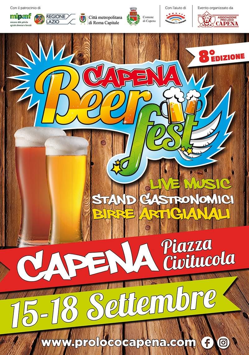 A Capena, in provincia di Roma, si attende l’ottava edizione della festa della birra: Capena Beer Fest, un’occasione per ascoltare musica live e godersi qualche sera di relax. Dal 15 al 18 settembre.