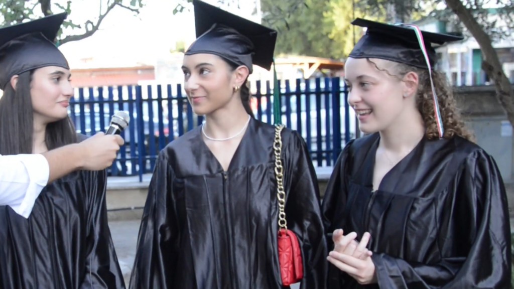 La serata è poi continuata con un rinfresco offerto dal bar della scuola durante il quale non sono mancate delle conversazioni. Tra le tante interviste rivolte sia ai ragazzi sia ai genitori, le migliori sono state: “Come è stata la notte prima degli esami? Quali sensazioni hai provato?” “Ho avuto molta ansia però è stato bello perché ci siamo riuniti tutti al Duomo di Monterotondo per cantare la famosissima canzone di Venditti. Me lo ricorderò per sempre”; “Che emozioni ha provato a vedere oggi suo figlio?” Due mamme hanno risposto: “Incredulità, tanta emozione, soddisfazione e felicità perché tutto è iniziato con la preside che faceva il discorso cinque anni fa ed oggi si è concluso nello stesso modo. E’ finito un ciclo”.