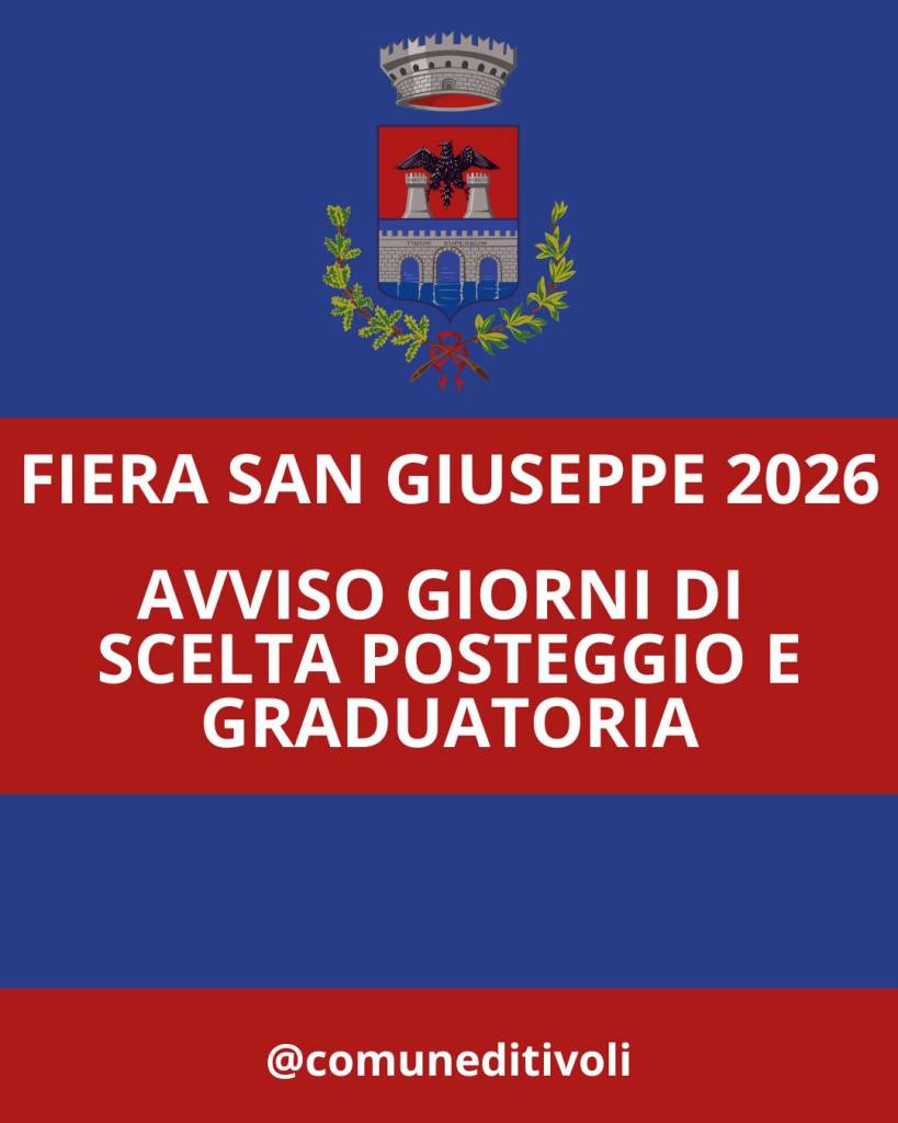 Il Comune di Tivoli ha pubblicato l’Avviso relativo alla Fiera di San Giuseppe 2026, con tutte le informazioni sulle modalità e il calendario per la scelta dei posteggi da parte degli operatori ammessi.