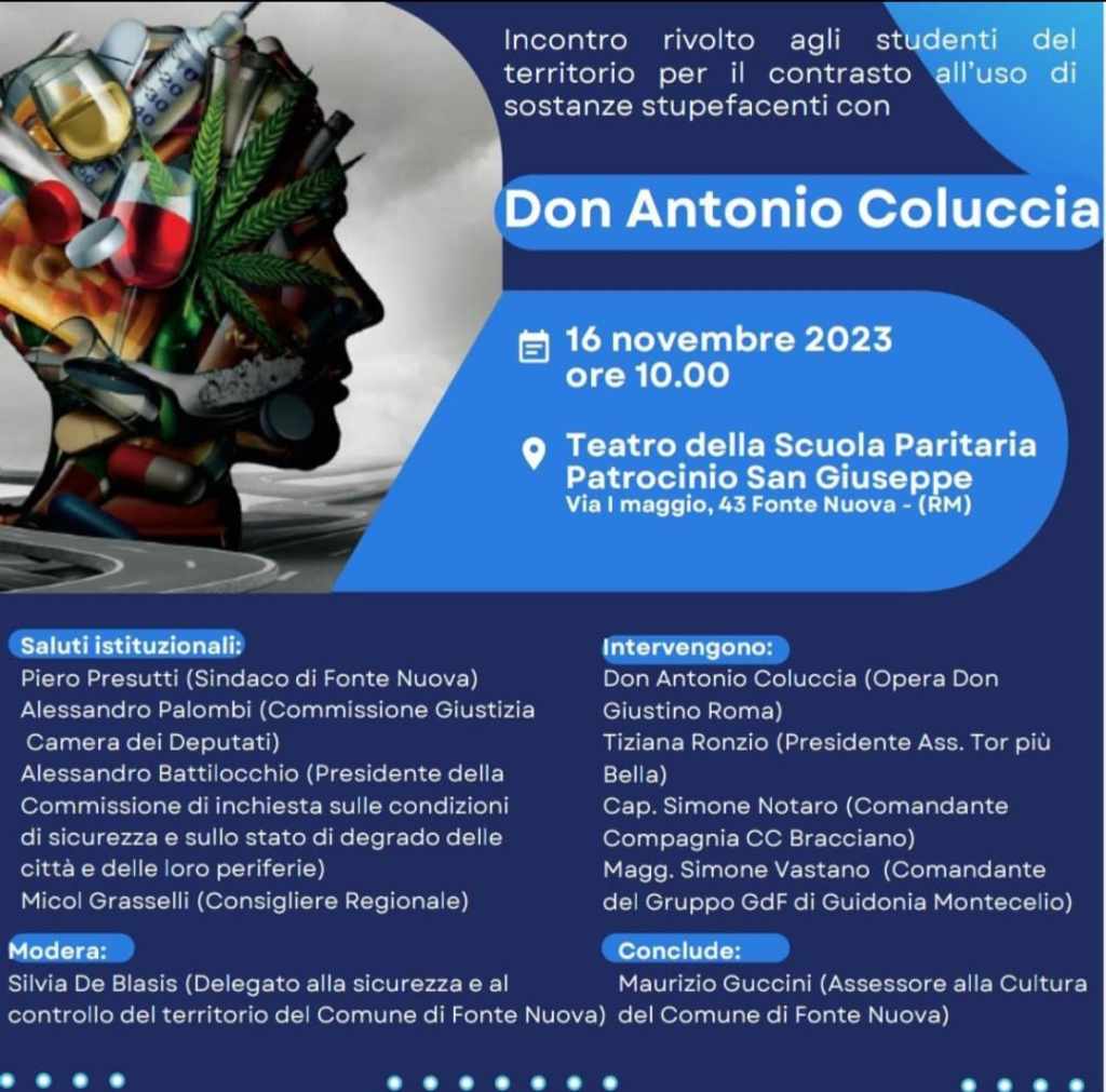 Giovedì 16 Novembre, presso il Teatro della Scuola Paritaria Patrocinio San Giuseppe di Fonte Nuova, si terrà un significativo dibattito rivolto agli studenti del territorio. L’obiettivo primario dell’evento è promuovere un dialogo costruttivo e informare gli studenti riguardo al contrasto all’uso di sostanze stupefacenti. La scelta di coinvolgere figure di spicco, tra cui Don Antonio Coluccia, il Sindaco Piero Presutti, e l’Assessore alla Cultura Maurizio Guccini, conferma l’importanza strategica di questa iniziativa.