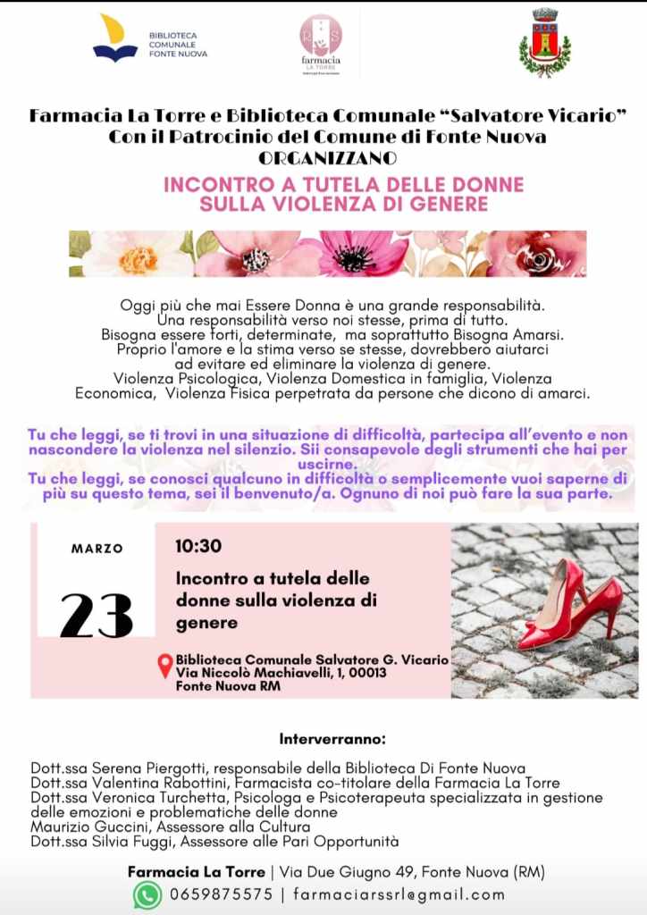 Sabato 23 Marzo, alle 10.30 presso la biblioteca comunale Salvatore Vicario, in Via Niccolò Machiavelli 1, si terrà un incontro dedicato alla sensibilizzazione e alla lotta contro la violenza di genere.