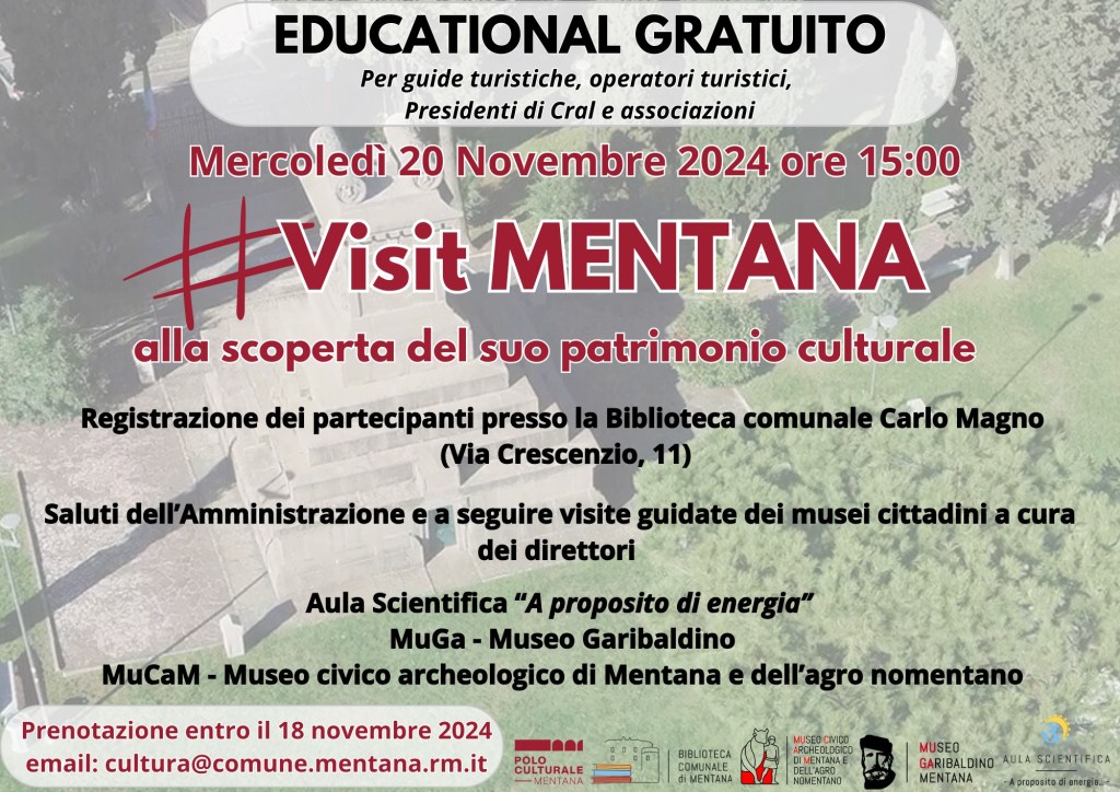 Durante queste giornate, i partecipanti avranno l’opportunità di conoscere l’offerta turistico-culturale di Mentana, con particolare attenzione ai musei civici, tra cui il MuCaM – Museo Civico Archeologico di Mentana e dell’Agro Nomentano, e il MuGa – Museo Garibaldino. La visita includerà anche la biblioteca comunale Carlo Magno, l’aula scientifica “A proposito di energia…” e il centro storico diffuso.