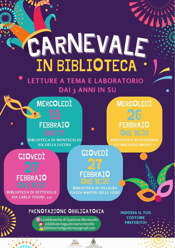 Le biblioteche di Guidonia Montecelio organizzano un’iniziativa speciale per celebrare il Carnevale con i più piccoli. Bambini dai 3 anni in su potranno partecipare a letture a tema e laboratori creativi in diverse sedi del territorio.