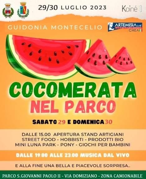 Guidonia. Cocomerata nel parco con musica live, mercatini e street food