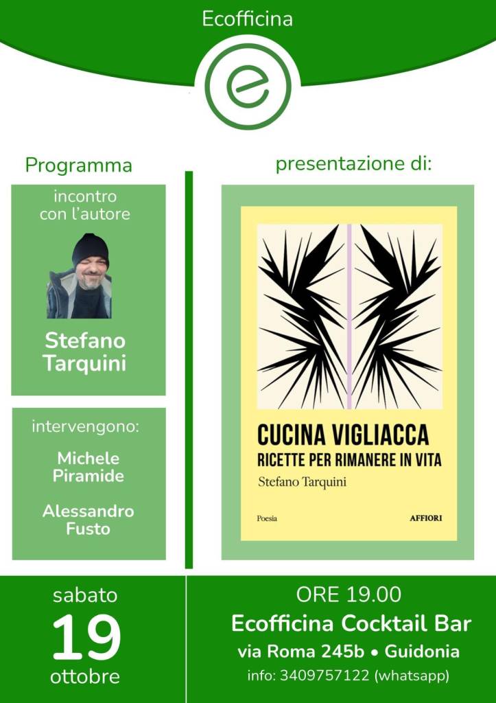 Il libro “Cucina Vigliacca“ inizia il suo tour con la prima presentazione, che si terrà presso Ecofficina a Guidonia, sabato dalle 19:00 alle 20:00.