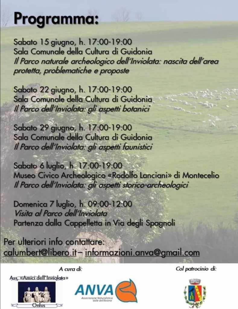 Il ciclo informativo è patrocinato dal Comune di Guidonia Montecelio e organizzato dalle associazioni del territorio, tra cui l’Associazione Amici dell’Inviolata e l’Associazione Naturalistica Valle dell’Aniene. Queste organizzazioni sono impegnate da anni nello studio, nella divulgazione e nella conservazione di quest’area preziosa e delicata del nord-est romano, che è minacciata da vari disastri ambientali e da decisioni amministrative controverse. Attualmente, sono in corso processi penali e ricorsi costosi per proteggere questa regione.