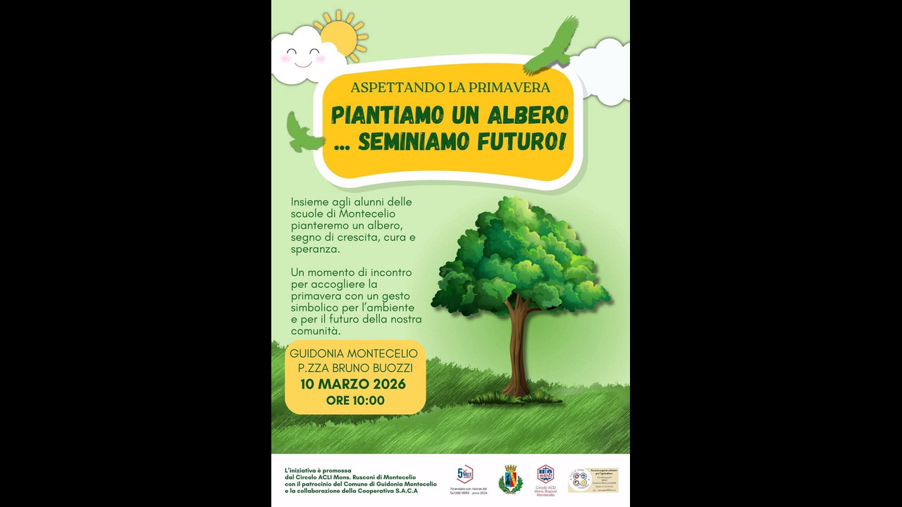 Un gesto simbolico per accogliere la primavera e promuovere l’attenzione verso l’ambiente. È questo lo spirito dell’iniziativa “Piantiamo un albero… seminiamo futuro!”, in programma martedì 10 marzo 2026 alle ore 10:00 a Guidonia Montecelio, in Piazza Bruno Buozzi.