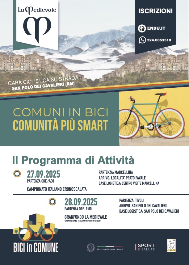 La Granfondo La Medievale 2025, manifestazione ciclistica di rilievo nazionale, entra ufficialmente tra gli eventi selezionati da “Bici in Comune”, il programma promosso da Sport e Salute S.p.A. in collaborazione con il Dipartimento per lo Sport e ANCI (Associazione Nazionale Comuni Italiani).