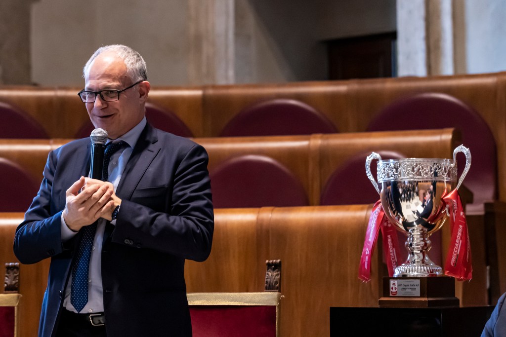 “Siamo felici di onorare in Campidoglio, che è la casa di tutti i romani, questo grande traguardo della Coppa Italia. Ragazze romane e romane acquisite, che hanno iniziato la carriera altrove e che si sono innamorate della nostra città e ne indossano con orgoglio il nome sulle maglie in campo. Complimenti alla società, che ha saputo creare un gruppo sano, coeso e determinato. Non si vincono tante partite se non c’è anche questo spirito. Bene che le donne siano apripista del grande ritorno dello sport professionistico nella nostra città. A Roma non c’è un gender gap, l’unico gap è l’impiantistica sportiva su cui stiamo lavorando giorno e notte. Il palazzetto di Viale Tiziano da settembre sarà pronto: sono in corso gli ultimi lavori grazie al finanziamento aggiuntivo di 2,2 milioni di euro che abbiamo dovuto stanziare per riaprirlo davvero e restituirlo all’uso delle società professionistiche romane che militano nelle massime serie. Per Roma sarà un anno di importanti appuntamenti sportivi legati alla pallavolo, dalla finale della Coppa Italia agli Europei maschili. Occasioni importanti che sostengono la diffusione anche dello sport di base, generando ricadute significative sull’economia e sull’indotto” – così si è espresso l’assessore allo Sport, Grandi Eventi, Turismo e Moda di Roma Capitale, Alessandro Onorato.
