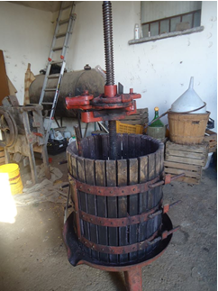 Con le svinate, come si usava dire quando il vino nuovo è pronto da consumare, iniziano le tradizionali cenette tra amici assaggiando il gustoso prodotto di questa o quella cantina. L’odore del mosto era presente ovunque e si respirava in particolare nei vicoli. Quando il mosto fermenta nei tini il liquido si deposita nel fondo con la parte zuccherina che si trasforma gradualmente in alcol. Le vinacce cioè le bucce dei chicchi ed i ‘’raspi’’ tendono ad accumularsi in alto e formano un cappello che si solleva e quasi fuoriesce dalla botte. Un intenso e continuo borbottio dimostrava che il miracolo era in corso. Mio nonno passava in ogni botte e con una sorta di forcina di legno e riaffondava il cappello rimescolando il tutto. Dopo qualche ora iniziava ancora la ‘’bollitura’’. Così fino allo ‘’svinamento’’ quando dopo assaggi ripetuti ottenuti attraverso la ‘’spillatura’’ (piccola cannula) decideva che il vino aveva raggiunto il grado alcolico giusto ed era abbastanza maturo per essere ‘’svinato’’. Le bucce d’uva e i raspi venivano raccolti piegando la botte sulla pancia e quindi venivano poi alla pressatura con l’ausilio del torchio. Con questa operazione si riusciva a recuperare un altro dieci per cento circa di liquido molto importante per la colorazione del vino.
