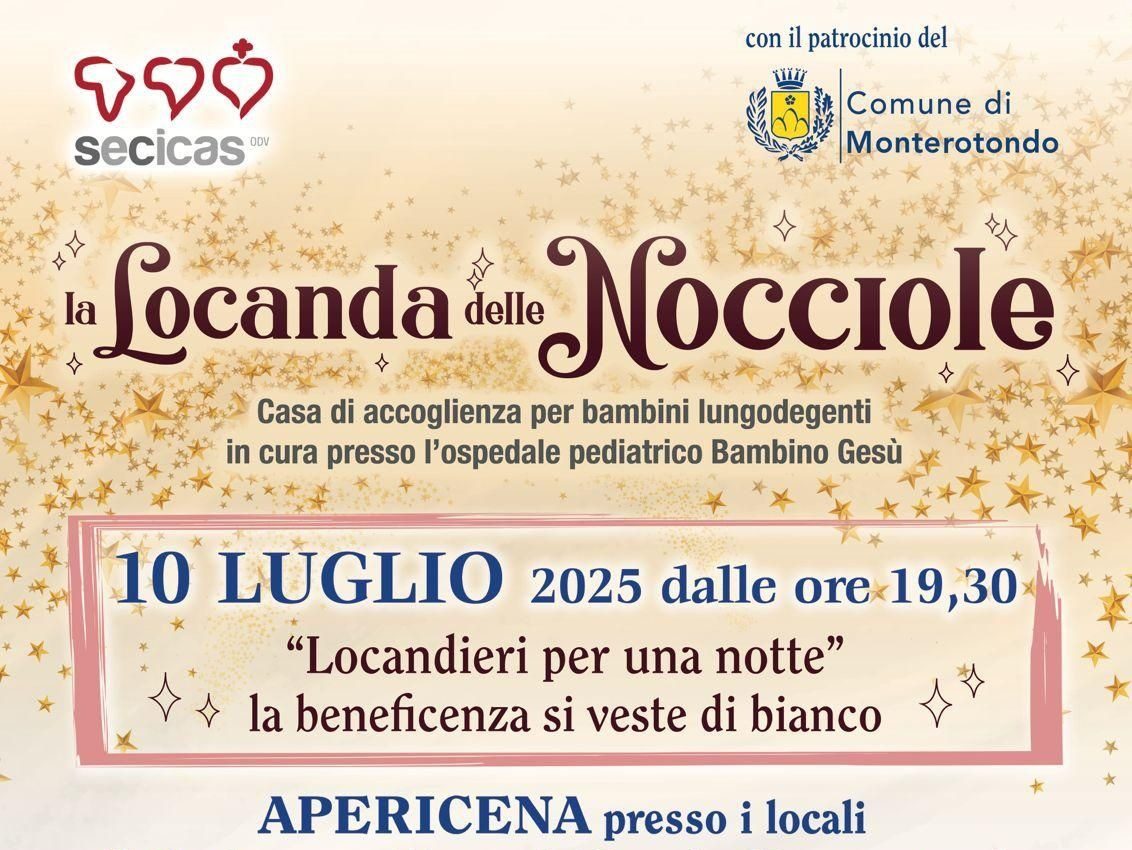Giovedì 10 luglio 2025, a partire dalle ore 19:30, le vie del centro storico di Monterotondo si animeranno con un evento all’insegna della solidarietà e dell’eleganza: “Locandieri per una notte – la beneficenza si veste di bianco”, una serata speciale organizzata a favore de La Locanda delle Nocciole, casa di accoglienza per bambini lungodegenti in cura presso l’Ospedale Pediatrico Bambino Gesù.
