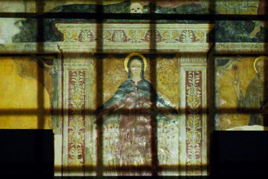 Si entra in una sala rettangolare, parte dell’antica chiesa di Santa Maria in Castello. Qui è rimasto un affresco quattrocentesco che raffigura la Madonna della Misericordia.