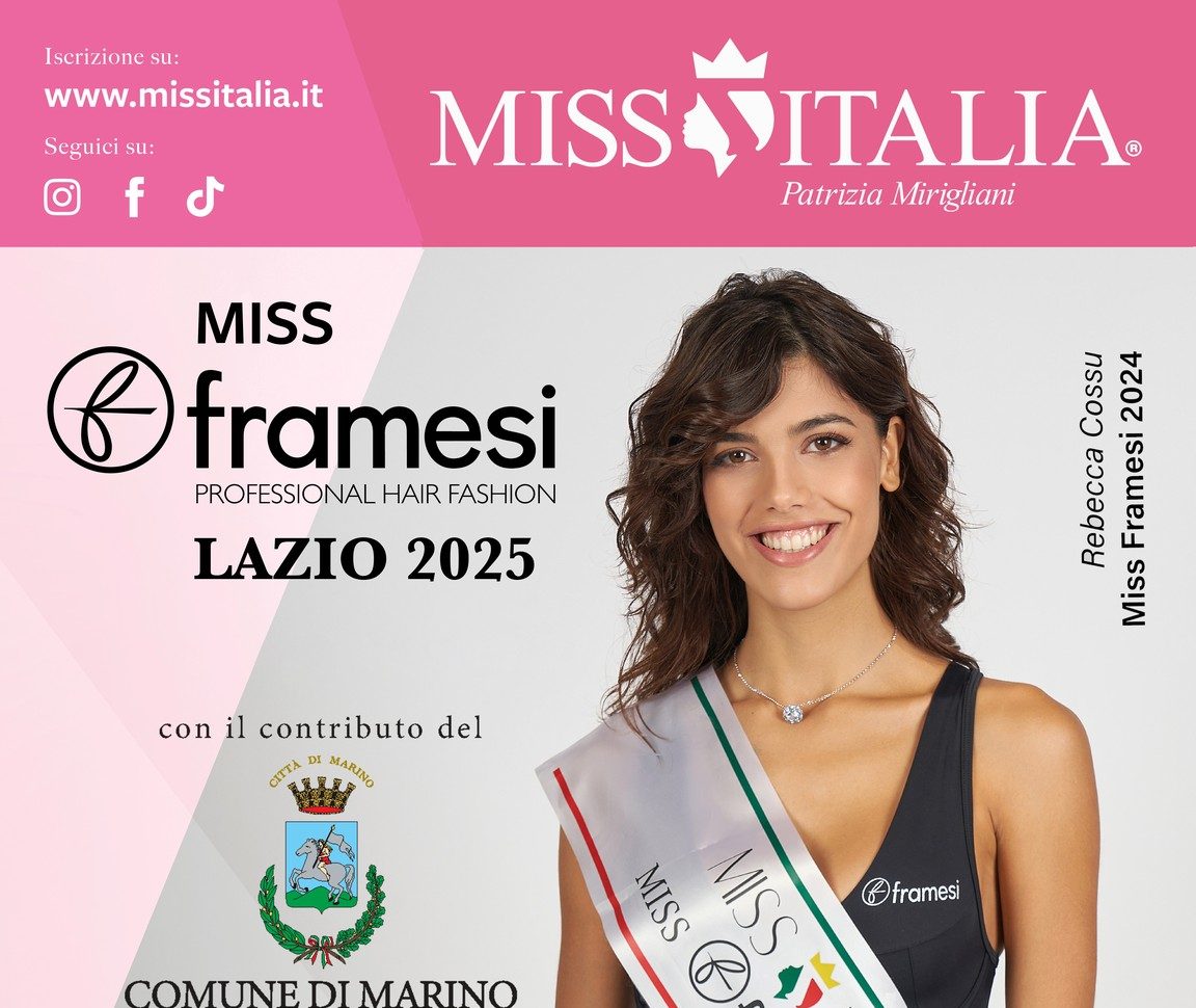 Il Comune di Marino si prepara ad accogliere una delle tappe regionali più attese del concorso nazionale Miss Italia. Domenica 13 luglio, alle ore 21:30, presso Palazzo Colonna in Piazza della Repubblica, si terrà infatti la selezione di Miss Framesi Lazio 2025.