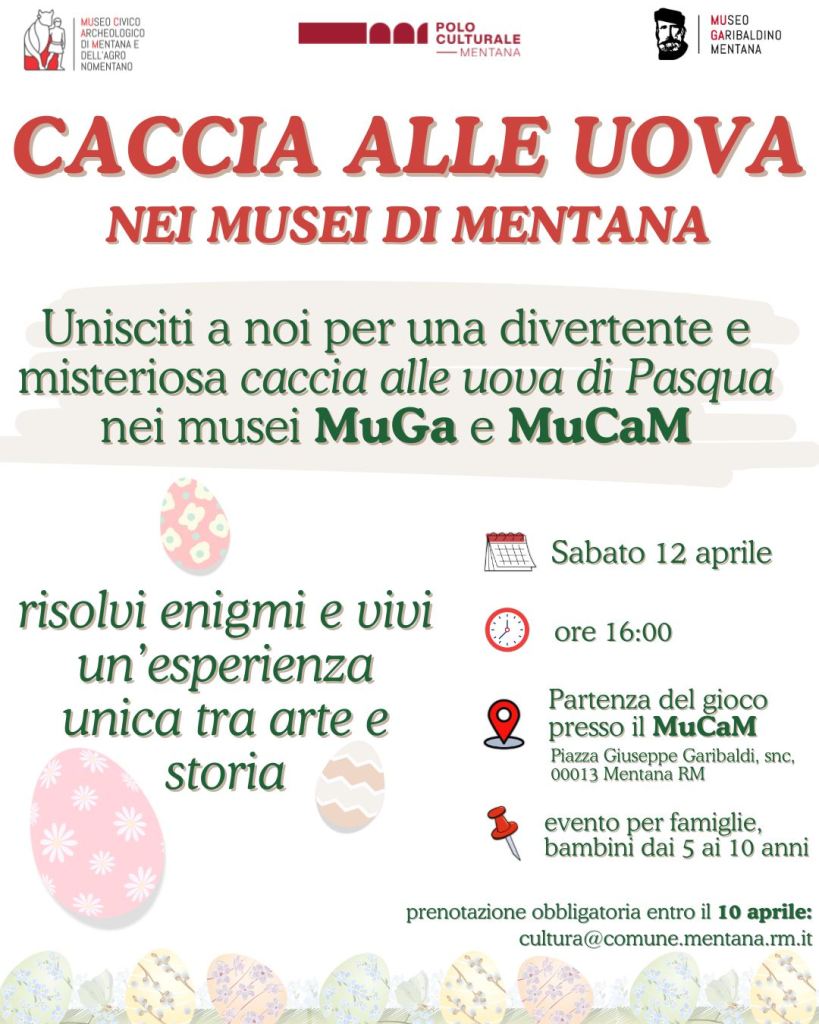Sabato 12 aprile 2025, alle ore 16:00, i musei di Mentana ospiteranno una speciale caccia alle uova di Pasqua, un evento ludico-didattico pensato per famiglie con bambini dai 5 ai 10 anni.