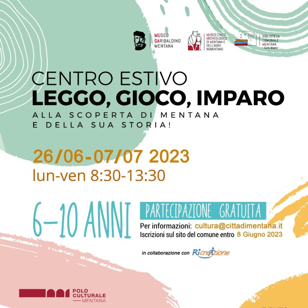 Dal 26 giugno al 7 luglio, a Mentana, presso la Biblioteca comunale Carlo Magno e i musei cittadini MuGa e MuCaM, i bambini dai 6 ai 10 anni avranno l’opportunità di immergersi in un mondo di conoscenza, divertimento e apprendimento, con il centro estivo culturale “Leggo e gioco e imparo!”.