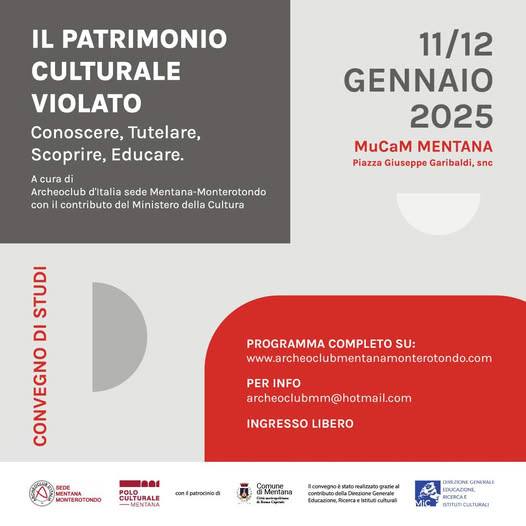 L’Archeoclub d’Italia, sede Mentana-Monterotondo, organizza il convegno “Il Patrimonio Culturale Violato: Conoscere, Tutelare, Scoprire, Educare”, un evento dedicato alla riflessione sui beni culturali e alla promozione della loro salvaguardia.