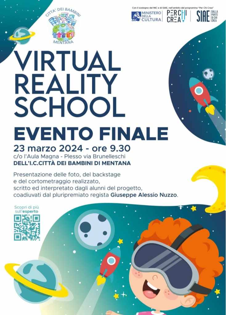 Il prossimo sabato 23 marzo, a partire dalle ore 9.30, presso il plesso di via Brunelleschi, a Mentana, si terrà l’evento conclusivo del progetto “Virtual Reality School“. Questo innovativo progetto è stato realizzato grazie alla collaborazione tra l’Istituto e il rinomato regista Giuseppe Alessio Nuzzo, coinvolgendo attivamente gli studenti.
