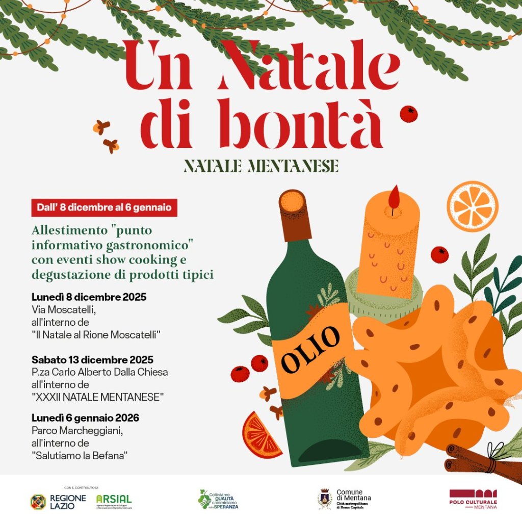 Prosegue il calendario del Natale mentanese 2025 con l’iniziativa “Un Natale di bontà”, promossa dal Polo Culturale Mentana, che unisce tradizione, cultura e valorizzazione delle eccellenze locali.