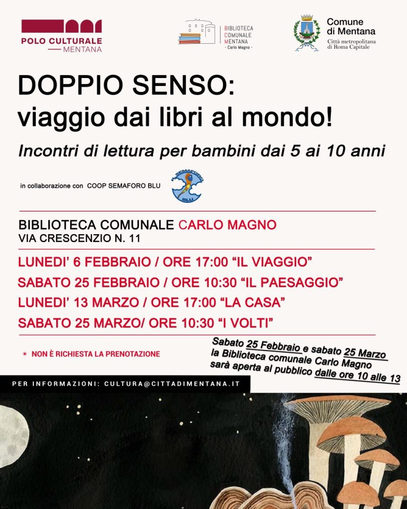 Lunedì 6 Febbraio, Sabato 25 Febbraio, Lunedì 13 Marzo e Sabato 25 Marzo, a Mentana, presso la Biblioteca Comunale “Carlo Magno”, in Via Crescenzio 11, si terranno quattro incontri di lettura condivisi, per bambini dai 5 ai 10 anni.
