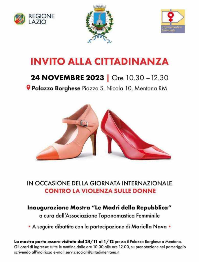 Venerdì 24 novembre, Mentana sarà il palcoscenico di un evento importante dedicato alla Giornata Internazionale contro la violenza sulle donne. Presso Palazzo Borghese, in Piazza San Nicola 10, alle ore 10.30, l’Associazione Toponomastica Femminile inaugurerà la mostra “Le Madri della Repubblica“, un’occasione unica per riflettere sul ruolo delle donne nella storia della nazione e sensibilizzare l’opinione pubblica sulla necessità di contrastare la violenza di genere.