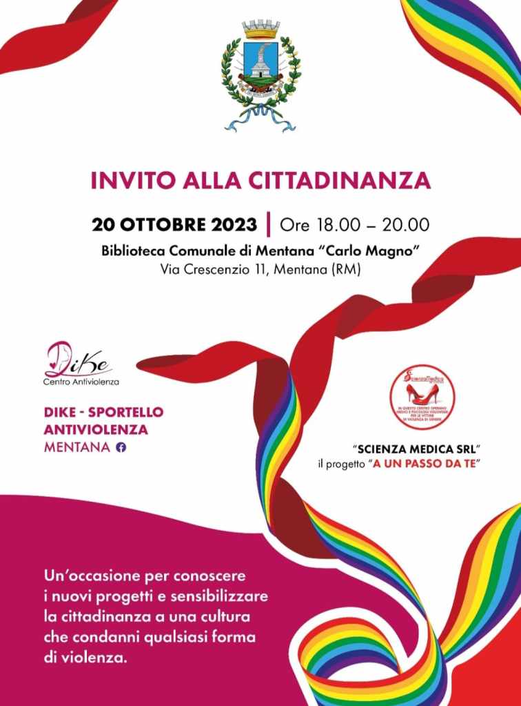 La biblioteca comunale “Carlo Magno” di Mentana, in Via Crescenzio 11, sarà il luogo di un importante evento il prossimo Venerdì 20 Ottobre. In collaborazione con Dike Sportello Antiviolenza Mentana e Scienza Medica SRL, si terrà un dibattito aperto a tutti i cittadini con l’obiettivo di presentare nuovi progetti e sensibilizzare la comunità contro ogni forma di violenza.