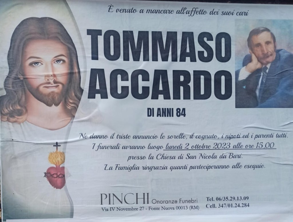 Accardo ha trascorso gli ultimi anni della sua vita a Mentana, dove aveva stabilito la sua residenza da tempo. Tommasino è deceduto all’età di 84 anni, lasciando un vuoto nel cuore di chi ha avuto il piacere di conoscerlo e di ammirare il suo lavoro e la sua simpatia.