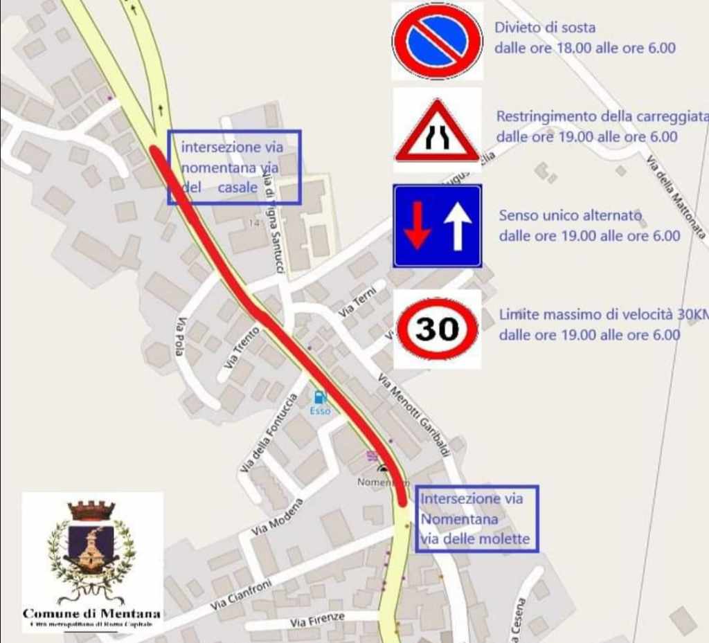 Il Comune di Mentana ha annunciato che, a partire dal 15 luglio 2024 e fino al termine dei lavori, Via Nomentana sarà interessata da importanti operazioni di bonifica della rete idrica. Le modifiche alla circolazione e alla sosta veicolare riguarderanno il tratto compreso tra l’intersezione con Via delle Molette e l’intersezione con Via del Casale.