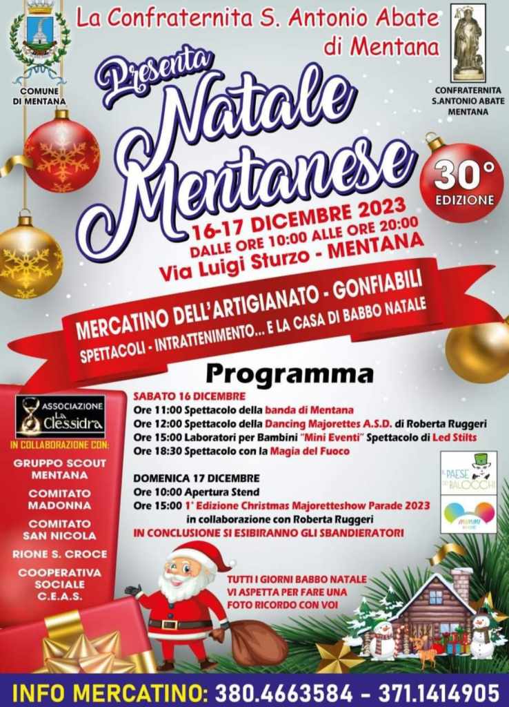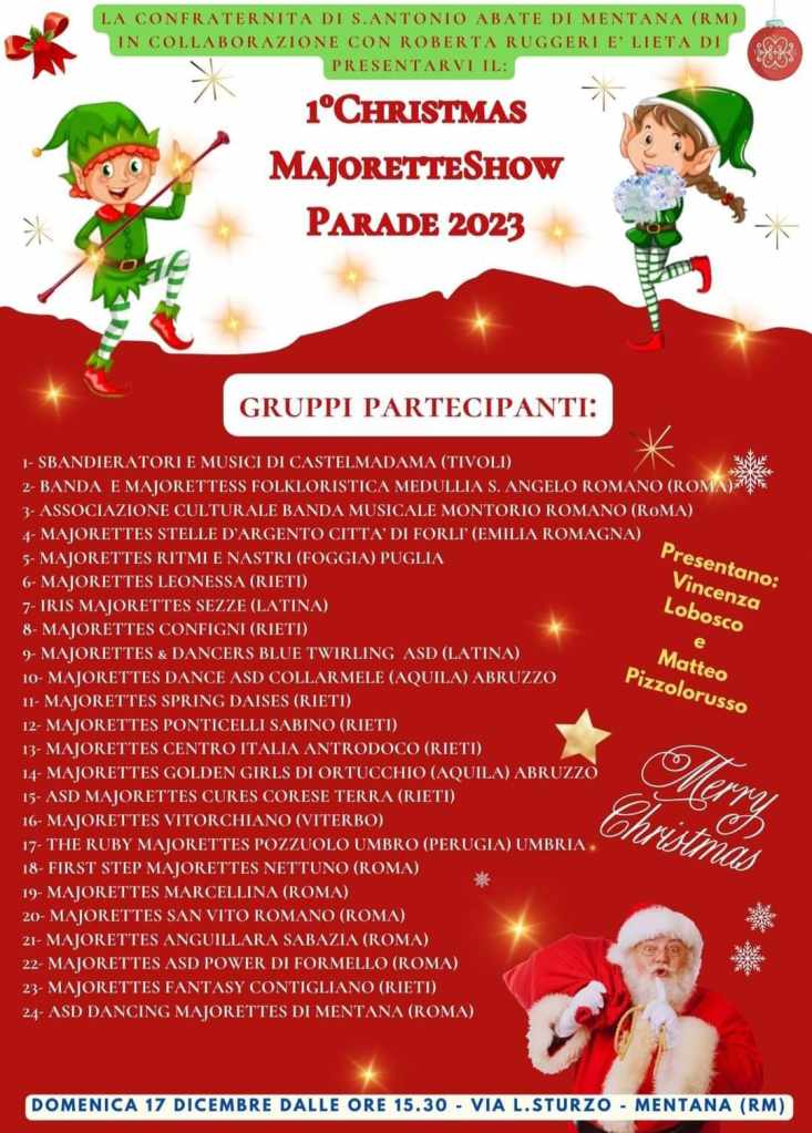 Le festività natalizie stanno per raggiungere l’apice nel cuore di Mentana, e Roberta Ruggeri, responsabile delle Dancing Majorettes, in collaborazione con la Confraternita di S.Antonio Abate, guidata dal Presidente Felice Stasio, ha organizzato un evento straordinario per sabato 17 dicembre 2023.