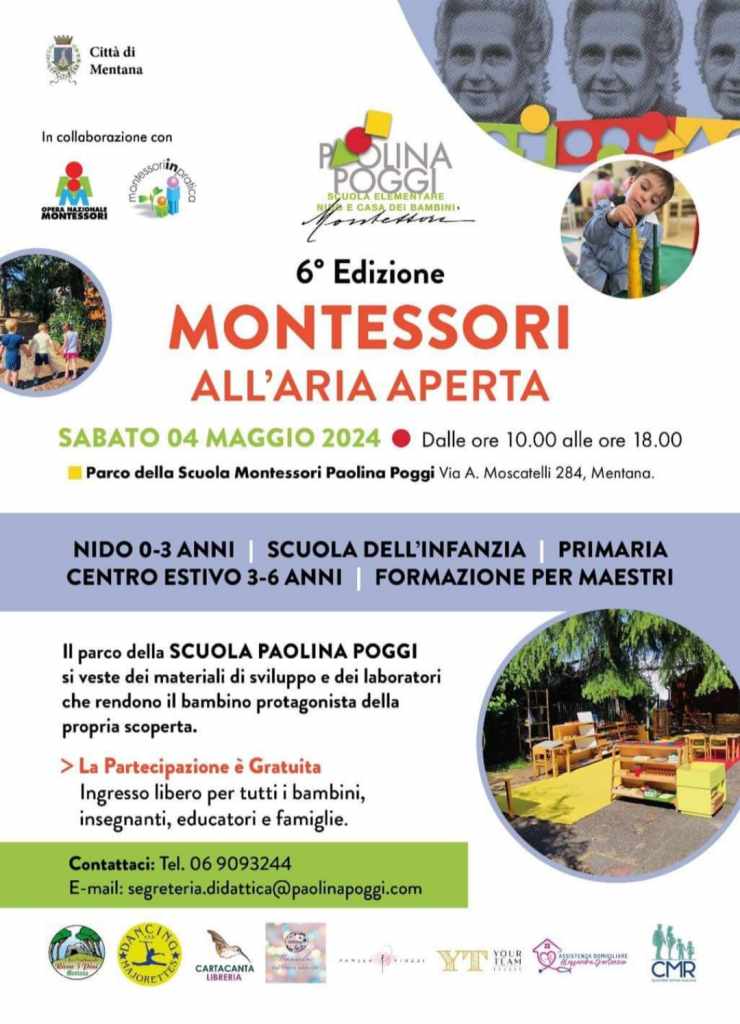 La Scuola Montessori Paolina Poggi di Mentana si prepara ad accogliere, con grande entusiasmo, il suo annuale evento “Montessori all’aria aperta – 6° edizione“. L’evento si svolgerà il 4 Maggio 2024, dalle ore 10:00 alle 18:00, presso il arco della scuola, situato in Via A. Moscatelli 284.