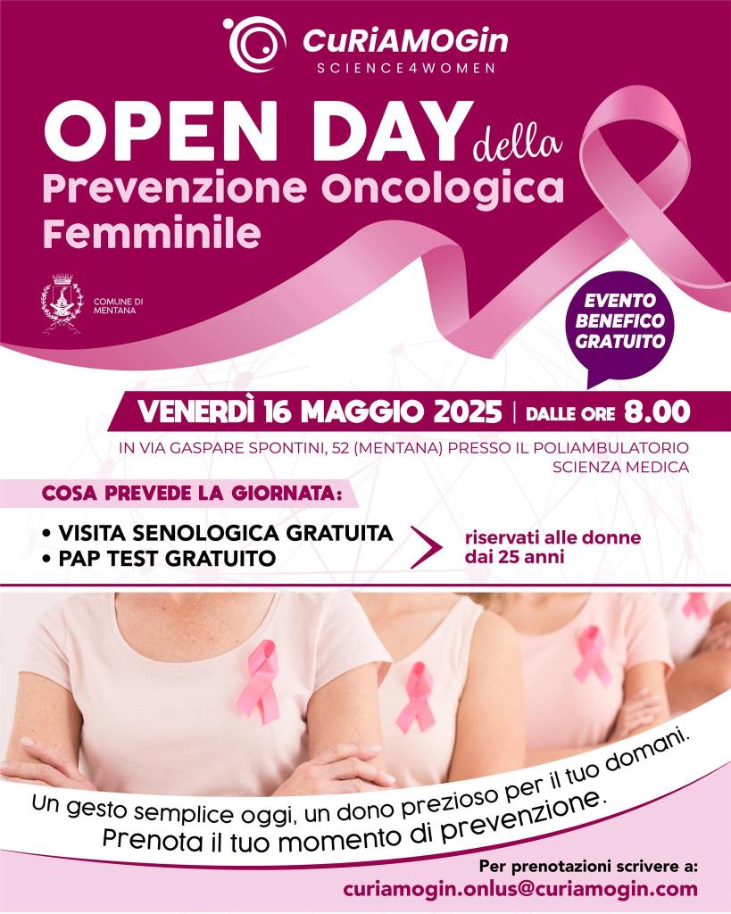 Venerdì 16 maggio 2025, l’associazione CuriAMOGin promuove a Mentana una giornata dedicata alla prevenzione oncologica femminile, con il patrocinio del Comune. L’iniziativa, gratuita, si svolgerà dalle ore 8 alle 17 presso il poliambulatorio Scienza Medica, in via Gaspare Spontini 52.