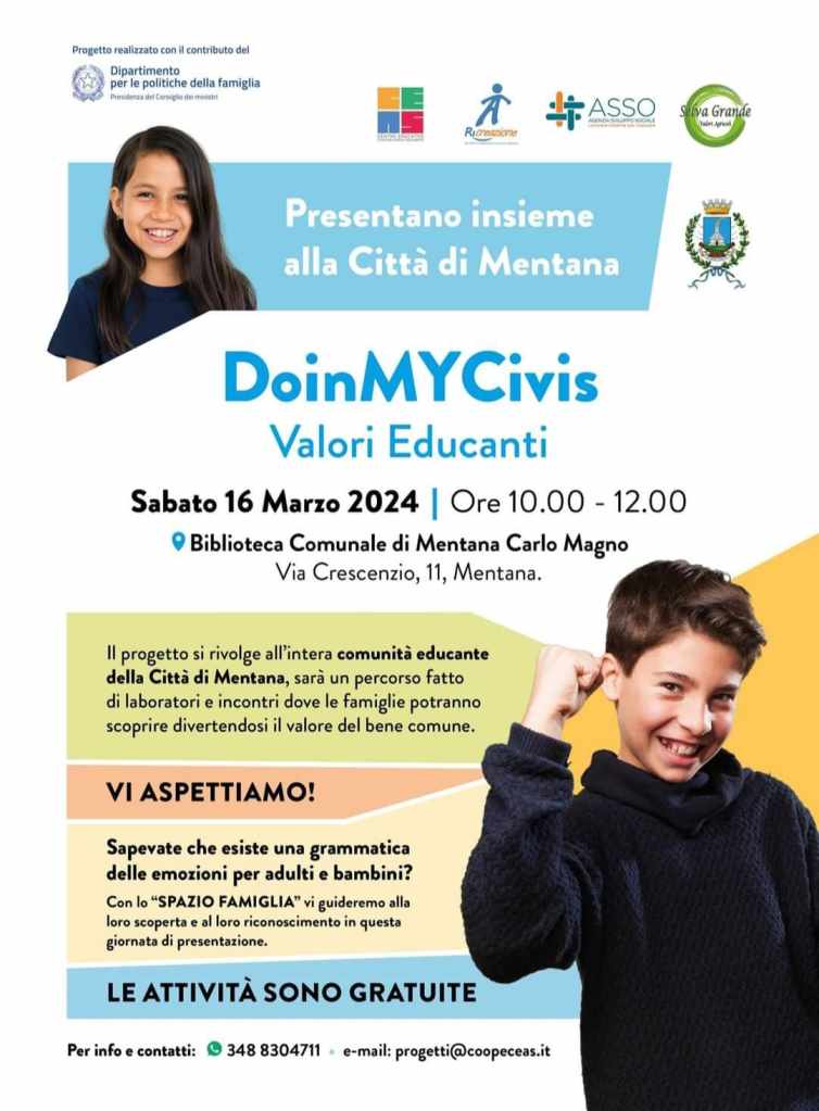 Il Comune di Mentana sta per intraprendere un’iniziativa coinvolgente e educativa destinata all’intera comunitร . Il progetto “Do-in MYCivis Valori Educanti” รจ un percorso pensato per offrire laboratori e incontri dove le famiglie avranno l’opportunitร di esplorare divertendosi il concetto di bene comune.